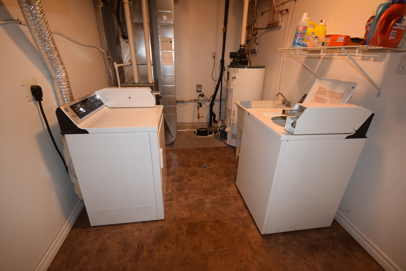 Clean-up is a breeze with the laminate and tile flooring throughout. This is a carpet free and smoke free unit. A/C included. Coin-op laundry on site. The unit comes with two parking spots.