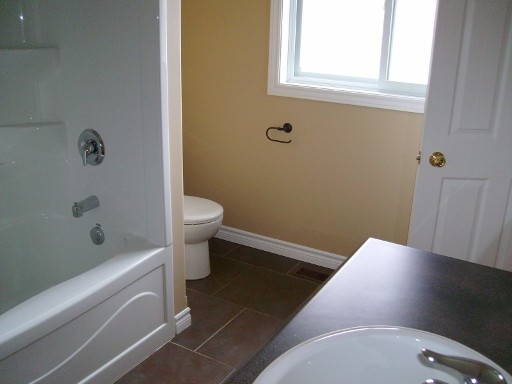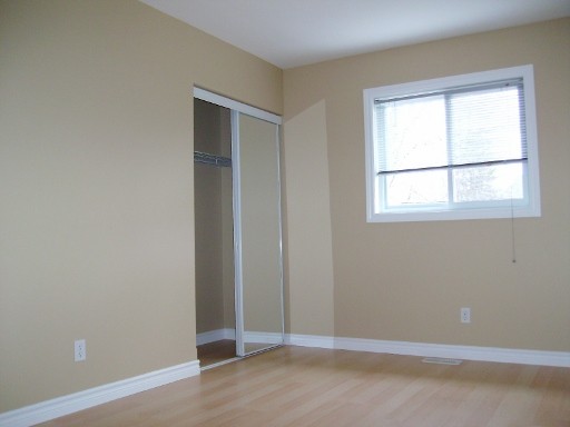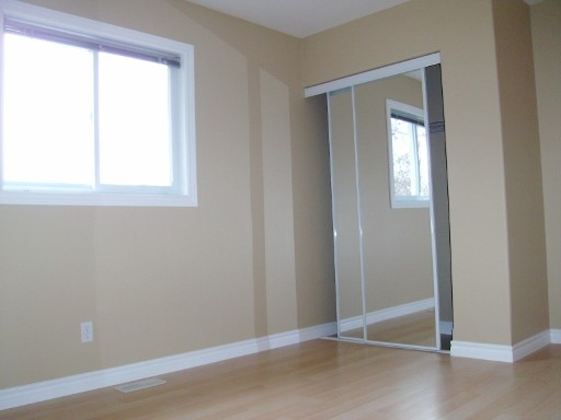 This is a 3 bedroom upper unit in a raised bungalow duplex that is large, bright, and energy efficient. The generously sized oak kitchen has 3 appliances and looks out onto the dining room and living room. The back deck leads out into the shared and partially fenced back yard. The full bathroom has an ensuite door to the master bedroom. All bedrooms are finished with mirrored sliding closet doors, venetian blinds, and cable/phone outlets.